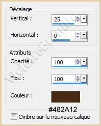 30 - Effets/Effets 3D/Ombre Portée : 25/0/100/100/couleur #482A12