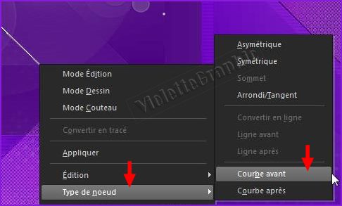 23 - clic droit sur la ligne Type de nœud / Courbe avant