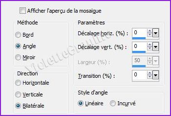 60 - Effets/Effets d'image/Mosaïque sans jointure réglages suivants: