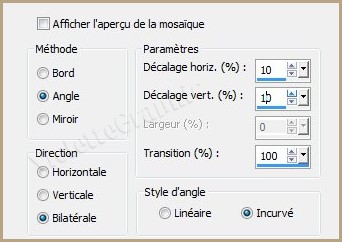 19 - Effets/Effets d'image/Mosaïque sans jointure réglages suivants: