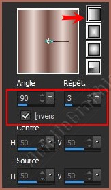 1 - Ouvrir une image transparente de 850 x 550 pixels remplir de dégradé linéaire: angle : 90°/ répétitions: 3/ inverser coché