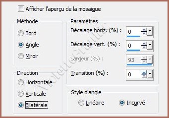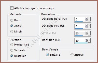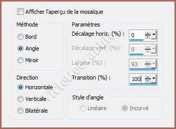 **Effets/Effets d'image/Mosaïque sans jointure réglages suivants: