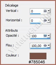 12 - Effets/Effets 3D/Ombre Portée : 0/0/100/100/couleur #785046