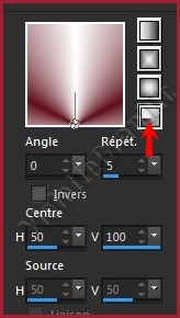**Remplir de dégradé formé des couleurs : configuré : radial/angle : 0/ Répétitions: 5 /inverser non coché Centre: hor.= 50/ vert.= 100