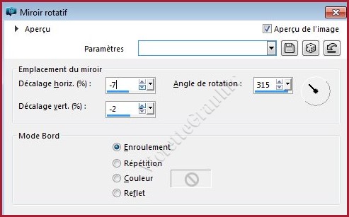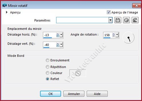 7 - Effets/Effets de réflexion/Miroir Rotatif réglages suivants :