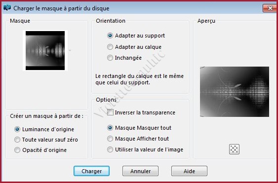 ** Calques/Charger/Enregistrer un masque/Charger à partir du disque sélectionner le masque Astrid masker 146.PspMask