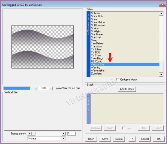 11 - Activer le calque supérieur Effets/Vanderlee/Unplugged X/Vertical Tile réglages suivants :