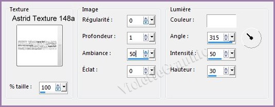13 - Effets/Effets de Textures/Textures réglages suivants : Rechercher la texture Astrid Texture 148a