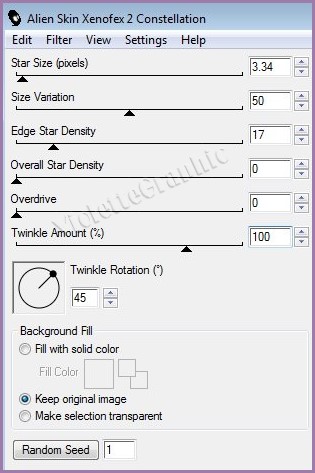 26 - Effets/ Alien Skin Xenofex 2 / Constellation réglages suivants :