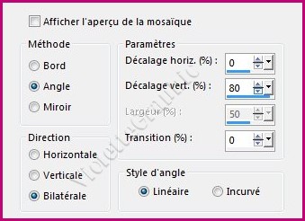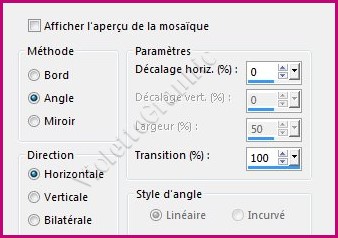 27 - Effets/Effets d'image/Mosaïque sans jointure réglages suivants:
