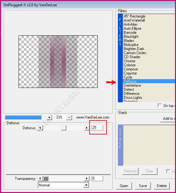 7 - Effets/VanDerLee/ Unplugged X / Defocus réglages suivants :