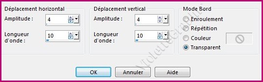 15 - Effets/Effets de Distorsion/Vagues réglages suivants :