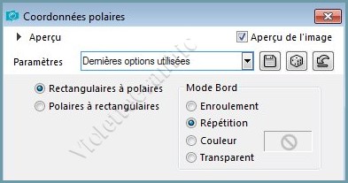 7 - Effets/Effets de Distorsion/Coordonnées Polaires réglages suivants :