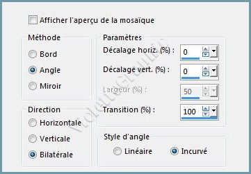 8 - Effets/Effets d'image/Mosaïque sans jointure réglages suivants: