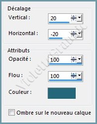 18 - Effets/Effets 3D/Ombre Portée : 20/-20/100/100/couleur #25667a