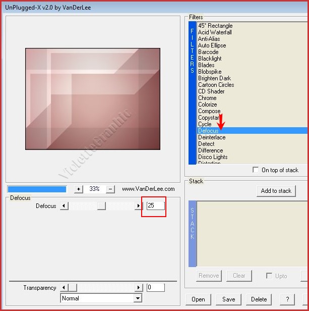 2 - Placer la couleur #f9dbd0 en premier-plan Effets/Vanderlee/Unplugged X/Defocus réglages suivants :