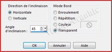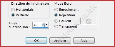 **Effets/Effets Géométriques/Inclinaison réglages suivants :