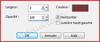 **Effets/Effets de Textures/Stores réglages suivants : couleur #7c3435