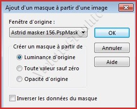 7 - Activer le masque Astrid masker 156.PspMask Calques/Nouveau calque de masque/à partir d'une image/Ajout d'un masque à partir d'une image sélectionner le masque Astrid masker 156.PspMask