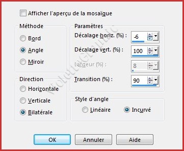 **Effets/Effets d'image/Mosaïque sans jointure réglages suivants: