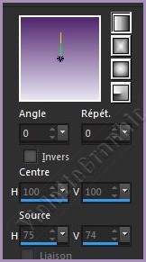 **Dans la Palette de Style Configurer un dégradé linéaire angle: 0°/Répétition: 0/Inverser non coché