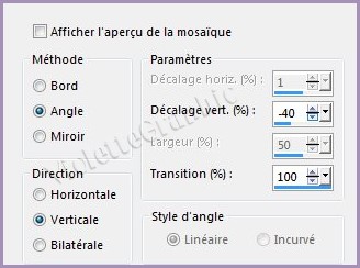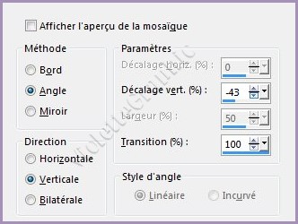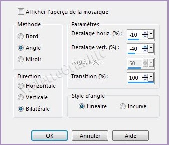 32 - Effets/Effets d'image/Mosaïque sans jointure réglages suivants :