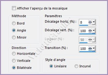 30 - Effets/Effets d'image/Mosaïque sans jointure réglages suivants :