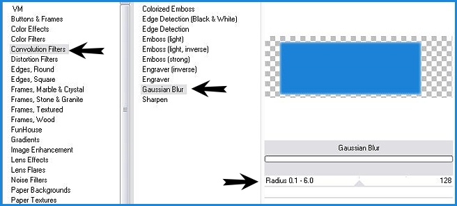 7 - Sélections/Désélectionner 8 - Effets/Unlimited/Convolution Filters/Gaussien Blur : appliquer le réglage prédéfini