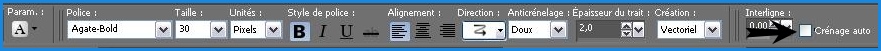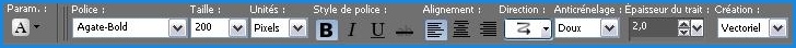 47 - Calques/Agencer/Déplacer vers le bas 48 - Calques/Fusionner Tout 49 - Ouvrir le tube de H@nne 50 - Redimensionner à votre goût 51 - Edition/Copier 52 - Revenir sur votre travail 53 - Edition/Coller comme nouveau calque 54 - A l'aide de l'outil "Déplacer" mettre en place 57 - Si vous souhaitez placer un texte 58 - Ouvrir votre avant-plan 59 - Activer l'outil texte et configuré ainsi: