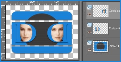24 - Sélection/modifier/Agrandir de 2 pixels 25 - Calques/Nouveau calque 26 - Activer votre image 27 - Redimensionner au besoin 28 - Edition/Copier 29 - Revenir sur votre travail 30 - Edition/Coller dans la sélection 31 - Sélections/Désélectionner 32 - Calques/Agencer/Déplacer vers le bas