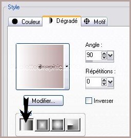 Configurer un dégradé linéaire angle: 90°/Répétition: 0/Inverser non coché