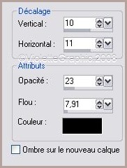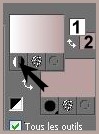 5 - Avec la baguette magique sélectionner l'intérieur du cadre 6 - Calques/Nouveau calque 7 - Sélection/modifier/Agrandir de 1 pixel 8 - Remplir avec le gradient 9 - Calques/Agencer/Déplacer vers le bas 10 - Désélectionner 11 - Calques/Fusionner les calques visibles 12 - Effets/Effets 3D/ Ombre Portée :