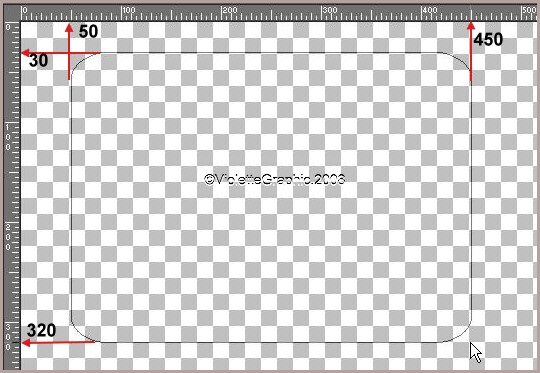 *** 1 - Ouvrir une image transparente de 1024 x 300 pixels 2 - Affichage/Règles 3 - Activer l'outil forme et choisir rectangle arrondi :