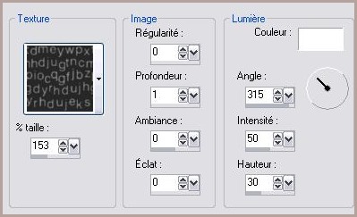 24 - Calques/Agencer/Déplacer vers le bas 25 - Placer votre petite rectangle comme sur le modèle 26 - Calques/Fusionner les calques visibles 27 - Calques/ Nouveau calque28 - Permutez vos couleurs dans la Palette de Style 29 - remplir de dégradé 30 - Effets/Effets de texture/Letter 01.bmp