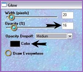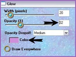 46 - Sélection/Transformer la sélection en calque 47 - Sélection/Désélectionner 48 - Effets/Eye Candy 3.01/Glow: * Opacitée : 32 * couleur claire