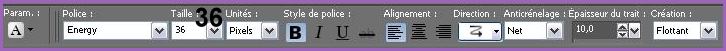 45 - Activer l'outil texte configuré ainsi: * Police Energy * Taille : 36 * Largeur : 10 * Flottante