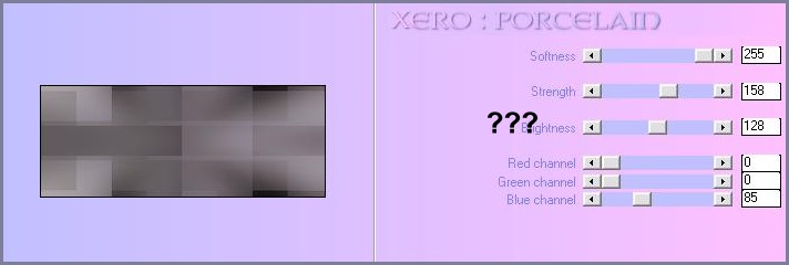 32 - Calques/Fusionner Tout 33 - Effets/Filtre Xero/Porcelain 34 - Image/Ajouter des bordures : 1 pixel couleur foncée de votre cadre