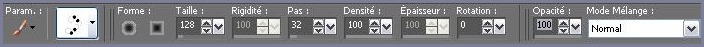22 - Dans la Palette des calques/Opacité vers 25/30 23 - Calques/ Nouveau calque24 - Activer l'outil Pinceau et rechercher vos pinceaux 25 - Placer la couleur blanche en avant-plan 26 - Placer le Brush LNK les kirsten 1