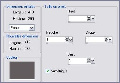 35 - Image/Ajouter des bordures : 1 pixel couleur foncée de votre cadre 36 - Image/Ajouter des bordures : 33 pixels couleur contrastante 37 - Sélectionner la bordure avec la baguette magique 38 - Placer votre gradient en premier-plan
