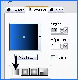Configurer un dégradé linéaire angle: 270°/Répétition: 0/Inverser non coché ***
