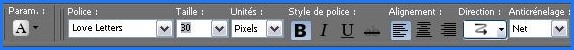 16 - Edition/Copier 17 - Revenir sur votre travail 18 - Edition/Coller comme nouveau calque 19 - Activer l'outil texte et configuré ainsi : Police Love Letters/ Taille : 30
