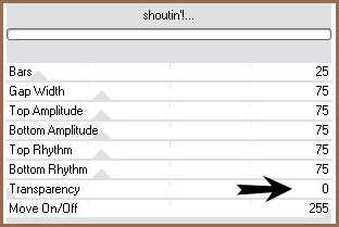 15 - Edition/Copier 16 - Calques/NOUVEAU CALQUE . 17 - Edition/Copier/Edition/Coller dans la sélection Vous ne voyez rien!! 18 - Sélection/Sélectionner Tout 19 - Sélection/Flottante 20 - Effets/ VM Extravaganza avec ces réglages :