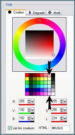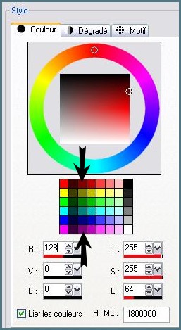 *** ** PREPARATION Pour obtenir le résultat identique à ce tutoriel, il faut absolument choisir les mêmes couleurs Si vous choisissez d'autres couleurs l'effet sera différent *** 1 - Ouvrir une image de 400 x 300 pixels 2 - fond transparent 3 - clic dans la Palette de couleur 4 - Choisir une couleur de la rangée 7 pour placer en arrière-plan