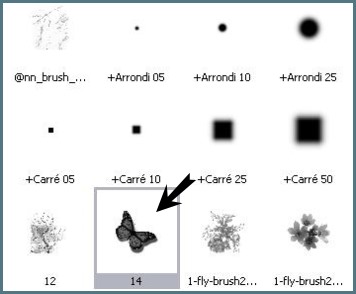 6 - Activer l'outil Pinceau 7 - Rechercher votre pinceau n°14