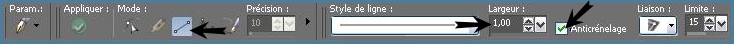 * largeur : 1 * Anticrénelage coché * créer sur vecteur coché 6 - Tracer un rectangle : Placer votre curseur au bout de la ligne ( vous pouvez ajuster en tirant sur les carrés )