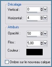 44 - Activer l'image 1 ( celle sans tube ) 45 - Edition/Copier 46 - Revenir sur votre travail 47 - Edition/Coller comme nouveau calque 48 - Effets/Effets 3D/Ombre Portée 49 - Effets/Effets d'image/décalage :