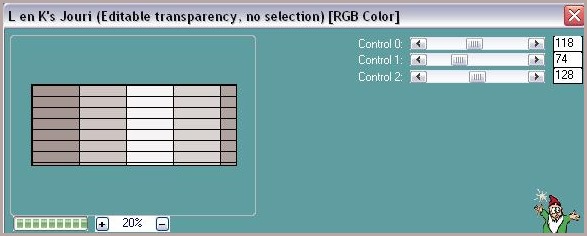 18 - Ouvrir une image transparente de 350 x 350 pixels 19 - Remplir de dégradé 20 - Effets/L&K Jouri :