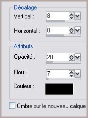13 - Sélection/Transformer la sélection en calque 14 - Sélections/Désélectionner 15 - A l'aide de l'outil "Déplacer" , placer à droite 16 - Placer l'opacité du calque à 50% 17 - Calques/Fusionner Tout