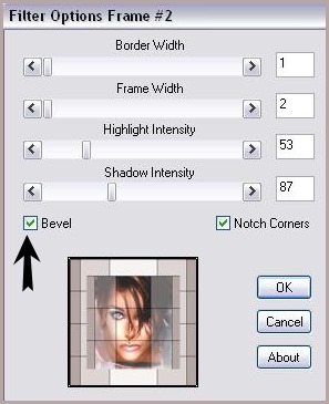 33 - Calques/Fusionner le calque du dessous 34 - Effets/Bordermania/Frame #2 avec ces réglages :