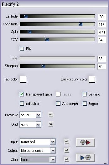 9 - Calques/Fusionner le calque du dessous 10 - Effets/Filtre Flaming Pear/Flexify avec ces réglages: